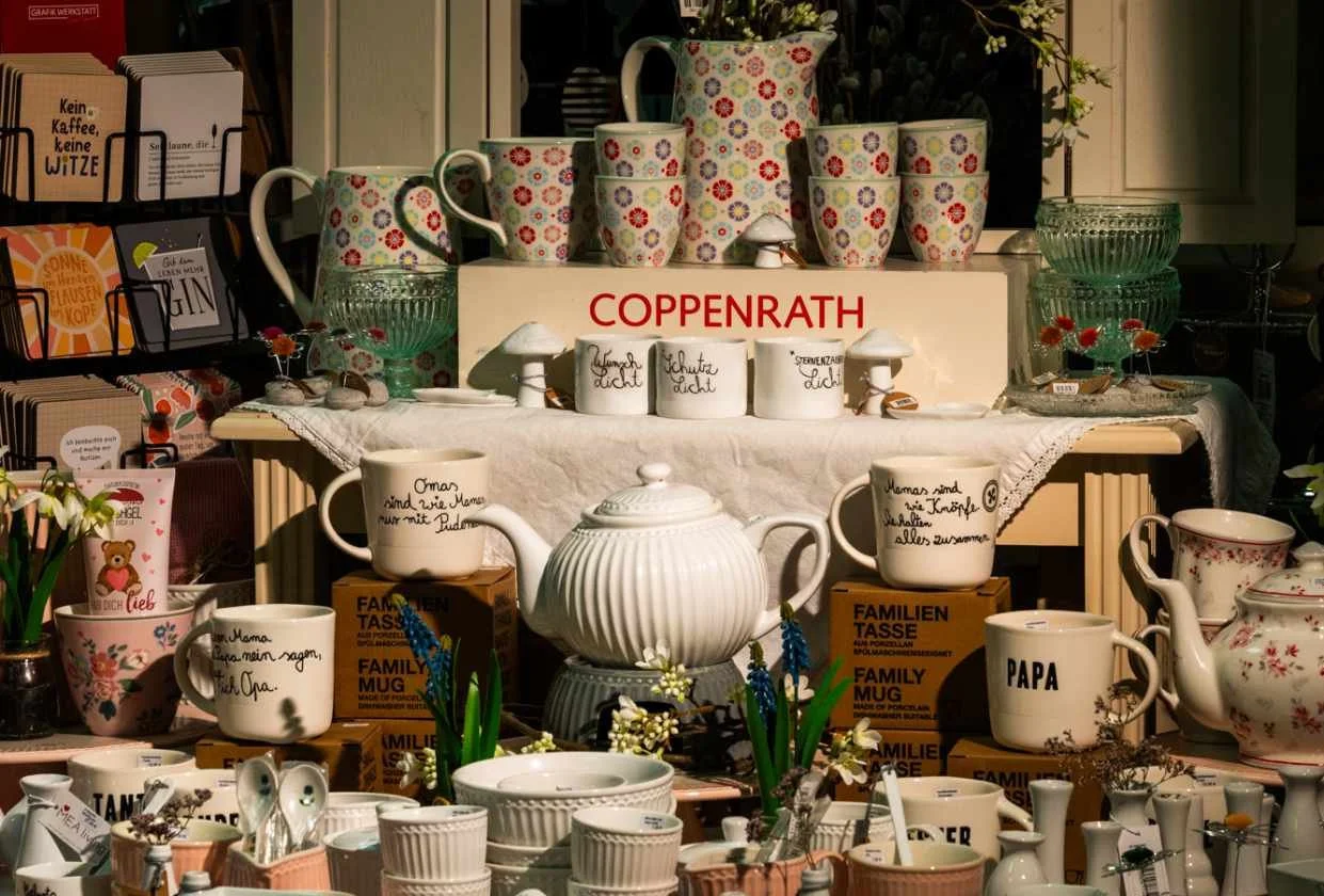 Kristina: Hübsche Geschenkideen und Kleinigkeiten zur Deko suche ich auf Messen persönlich aus. Oft begleitet von einer Mitarbeiterin oder Freundin. Präsentiert wird die Ware dann farblich und thematisch passend auf unseren Tischen oder auch in unserem Pavillon.